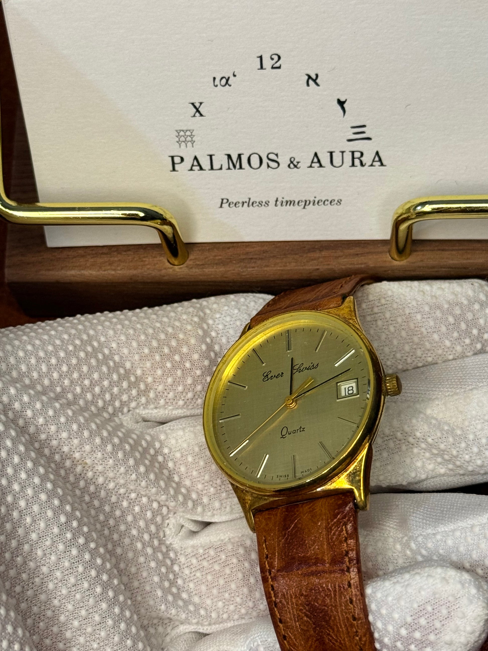 Ever Swiss watches combine Swiss elegance with affordability, offering a great entry point into quality timepieces. This model features a Swiss ETA movement and an 18k yellow gold-plated case.