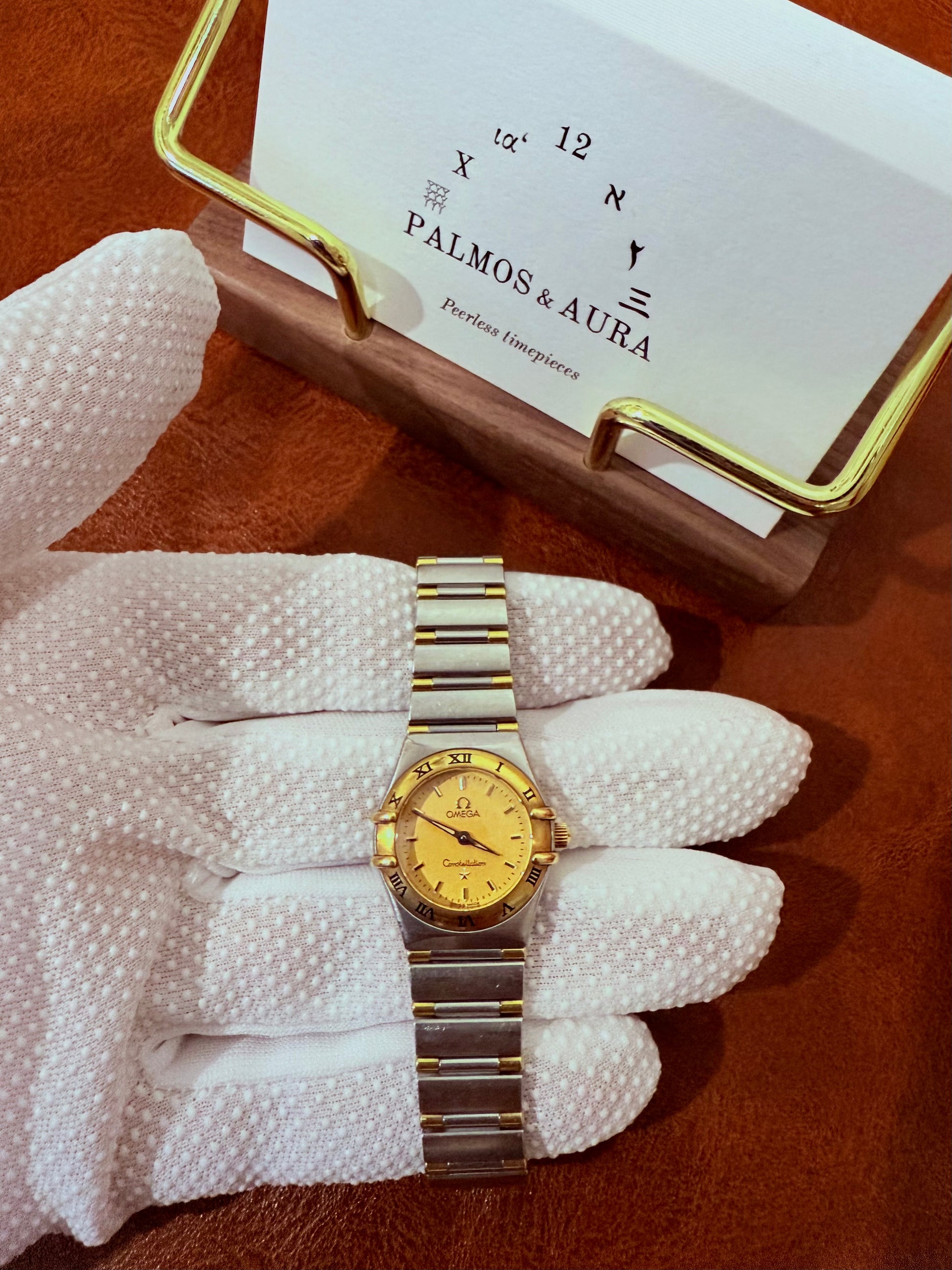 Casual yet classy, this Omega Constellation two-tone features an 18k yellow gold dial and a Roman numeral bezel. A timepiece that turns heads with its elegance and timeless appeal. A great gift idea—whether for your partner or for yourself, a confident woman with refined taste.