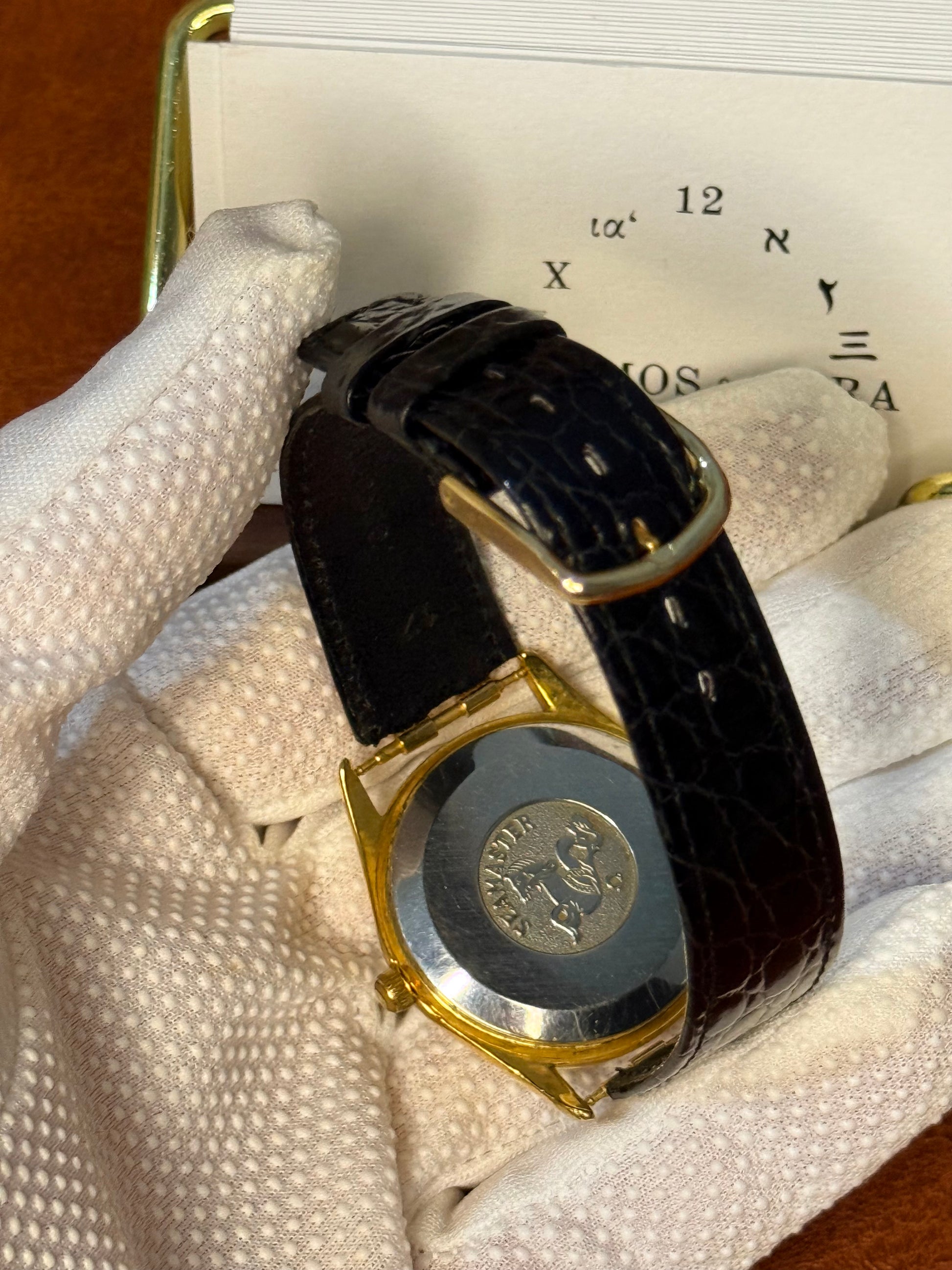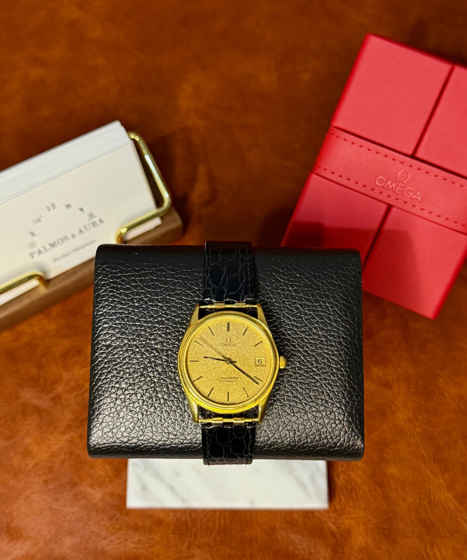 Experience the refined charm of classic Swiss craftsmanship with this vintage Omega Seamaster Automatic — a timepiece that exudes quiet luxury and understated confidence. It features an 18k yellow gold case, a champagne gold frosted dial, and 18k gold-plated barrettes that perfectly complement the 17mm original New Old Stock Omega leather strap.